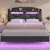 Queen Size Floating Bed Frame with Charging Station and LED Lights, Upholstered Platform